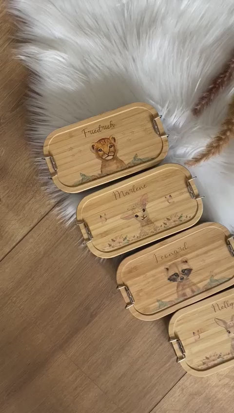 Die liebevoll gestaltete Brotdose ist mit dem Wunschnamen des Kindes graviert. Die besondere und hochwertige personalisierte Lunch Box ist für Mädchen und Jungen im Kindergarten und der Schule die personalisierte und sehr einzigartige Frühstücksbox und eine zauberhafte Aufbewahrungsdose und ein ausgefallenes und nachhaltiges Geschenk.