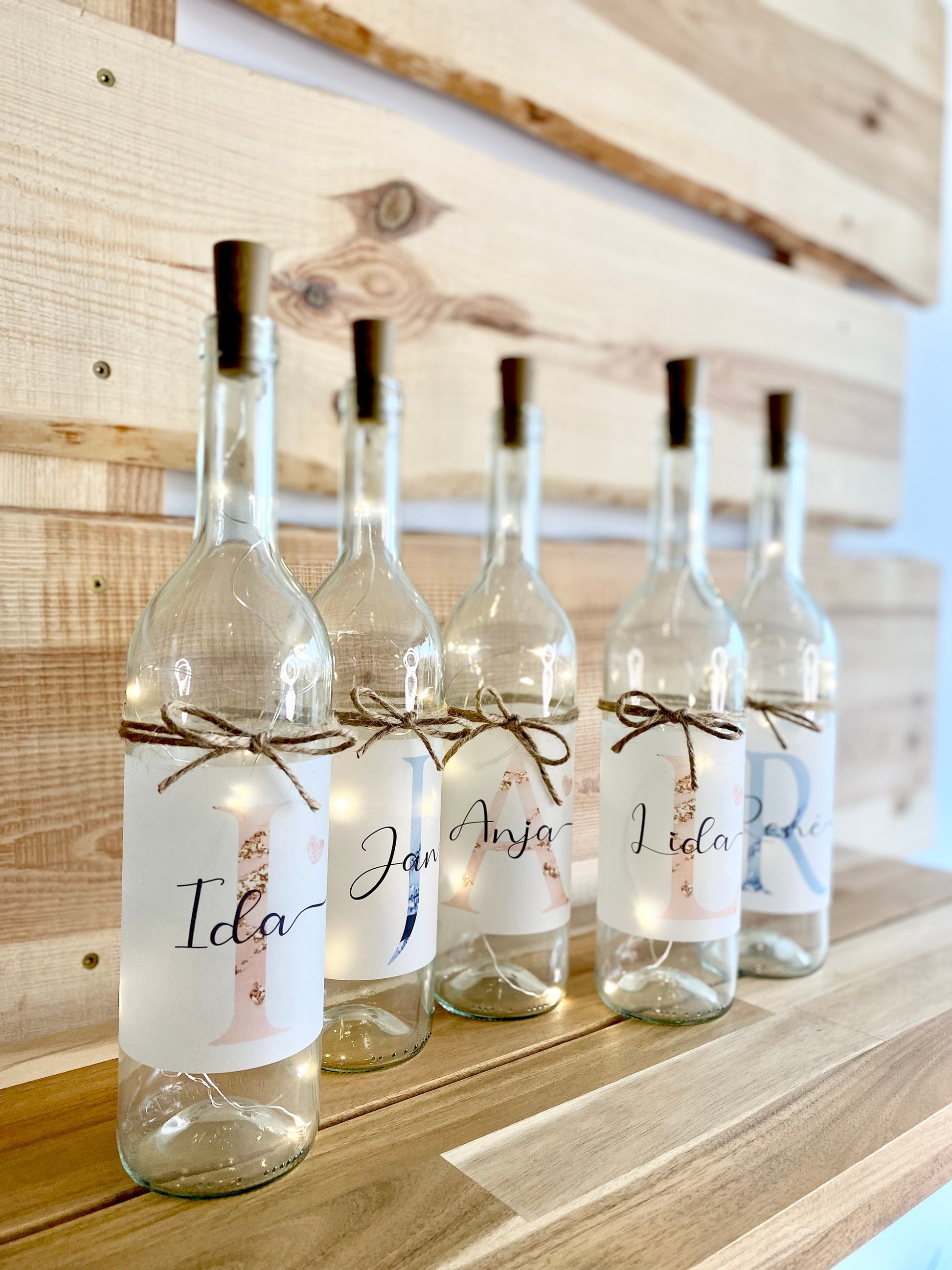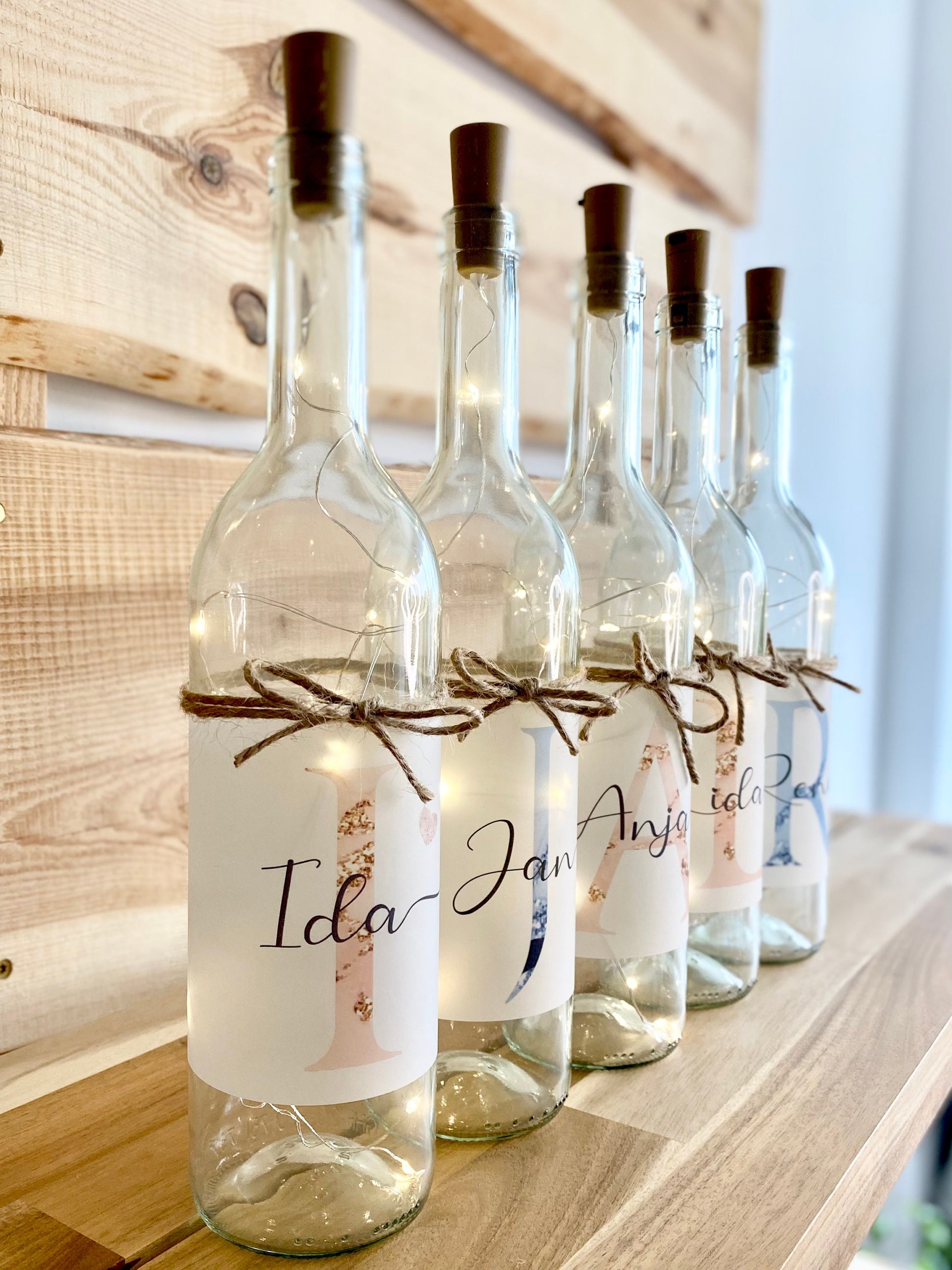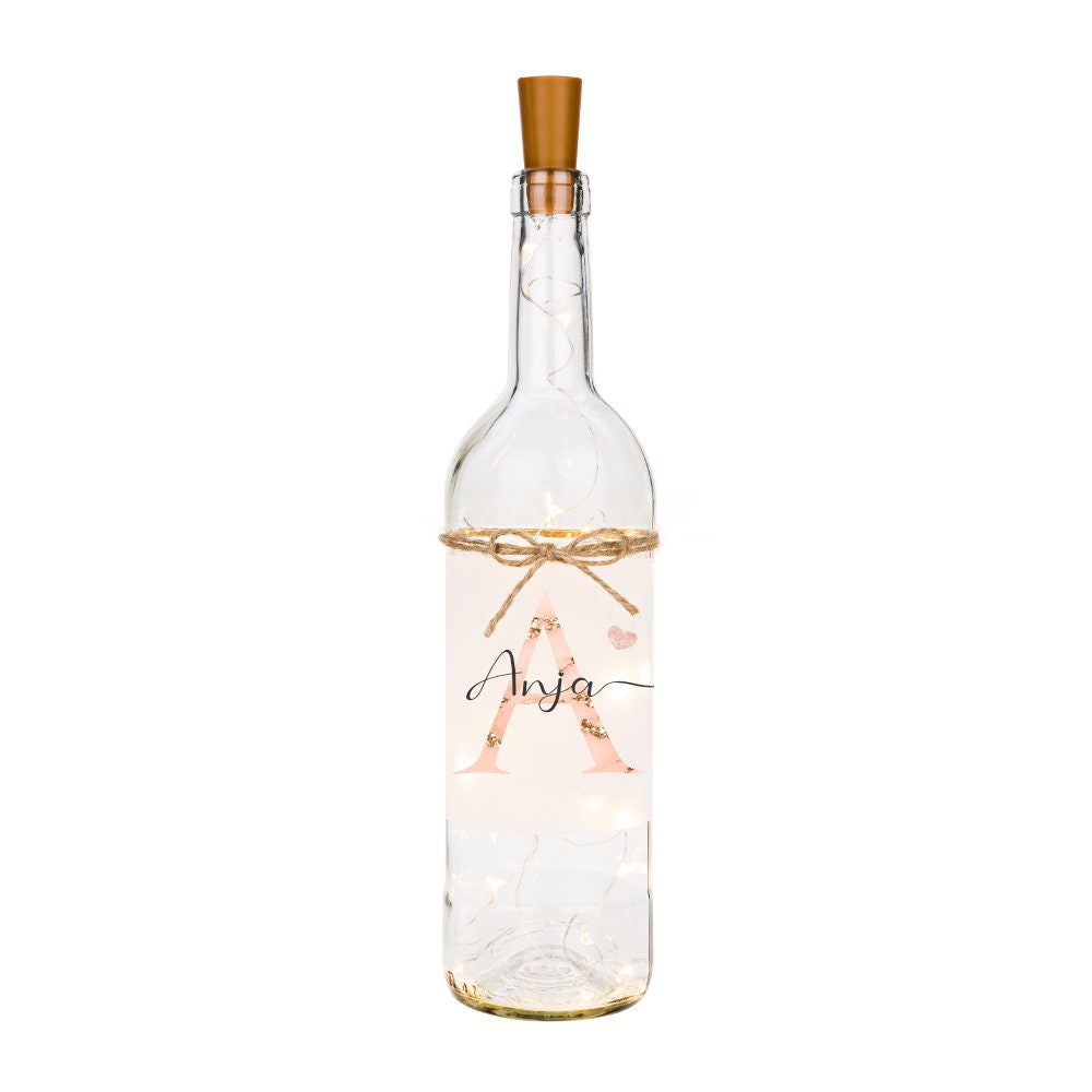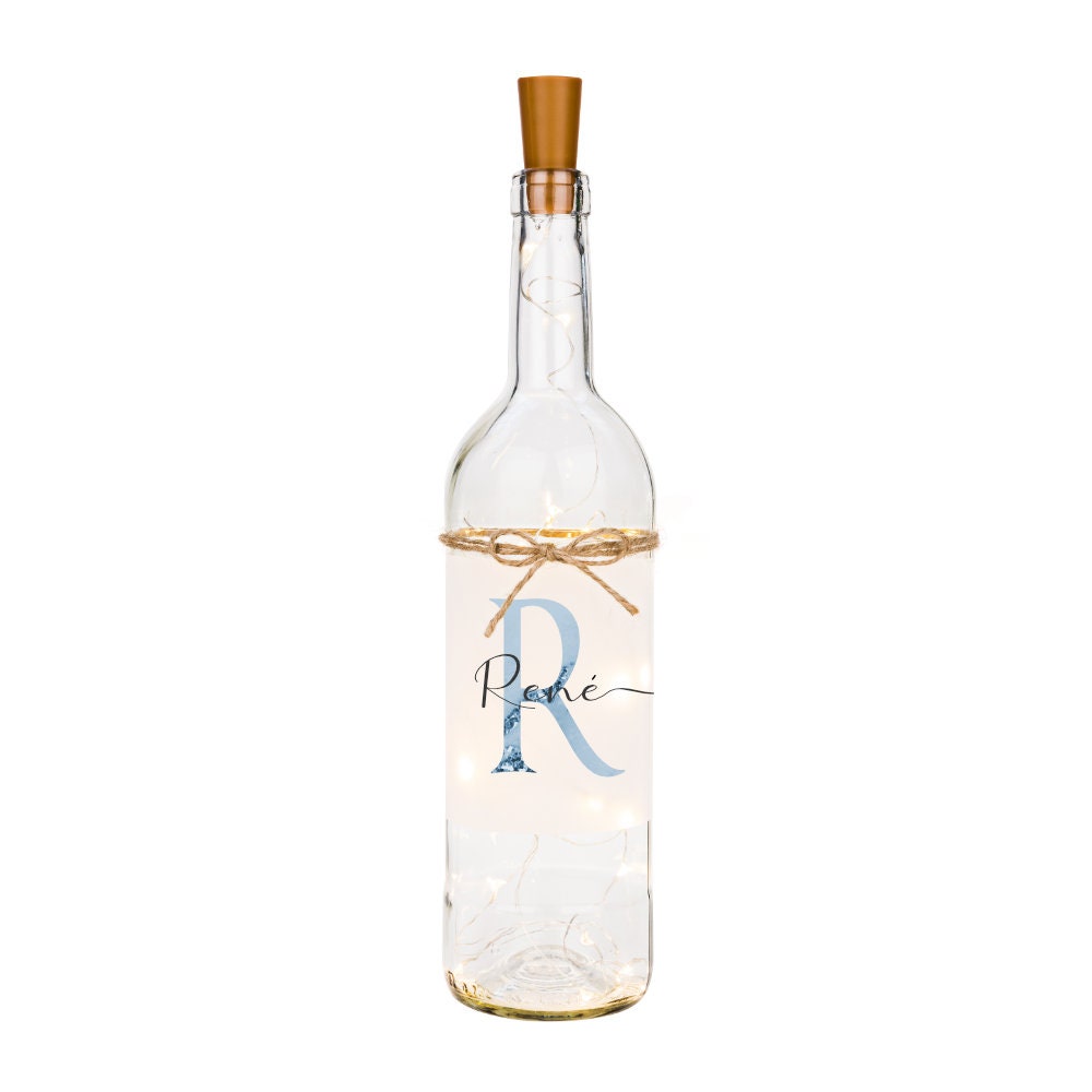Flaschenlicht "Buchstabe" mit dem Namen personalisiert | Originelles Geschenk für Frauen und Männer in Rosa und Blau | 2 Motivvarianten zur Auswahl