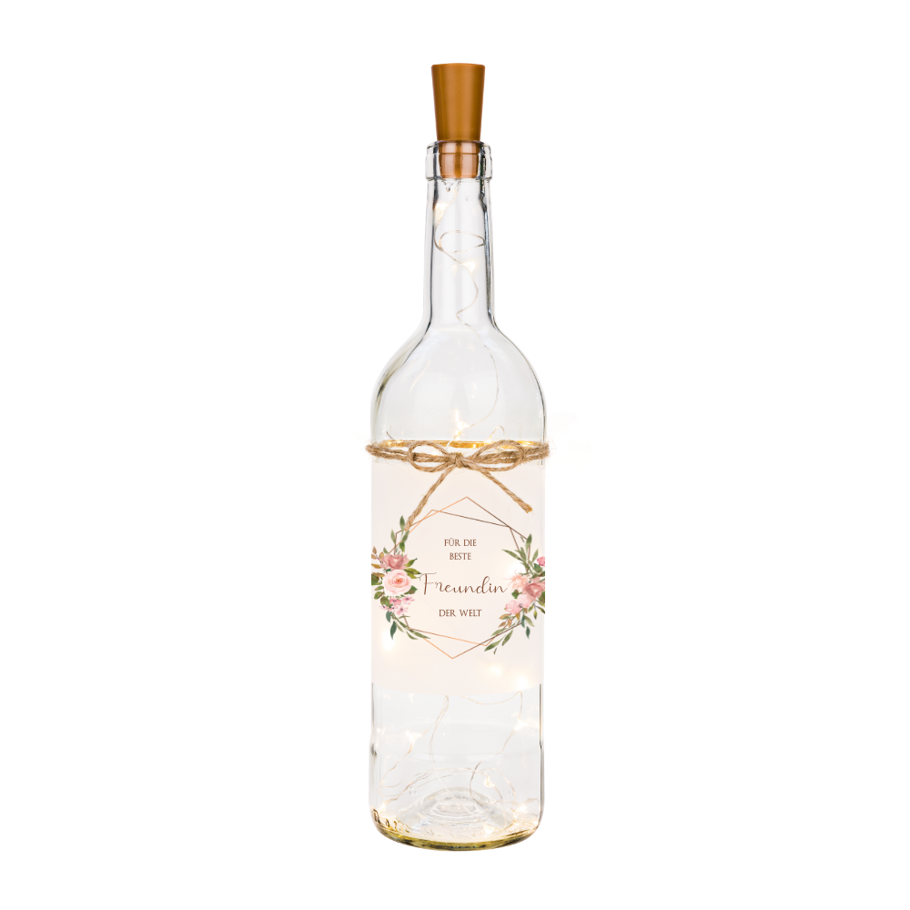 Flaschenlicht mit Spruch "Für die beste Freundin der Welt" | Perfektes Freundschaftsgeschenk | 2 Motivvarianten zur Auswahl