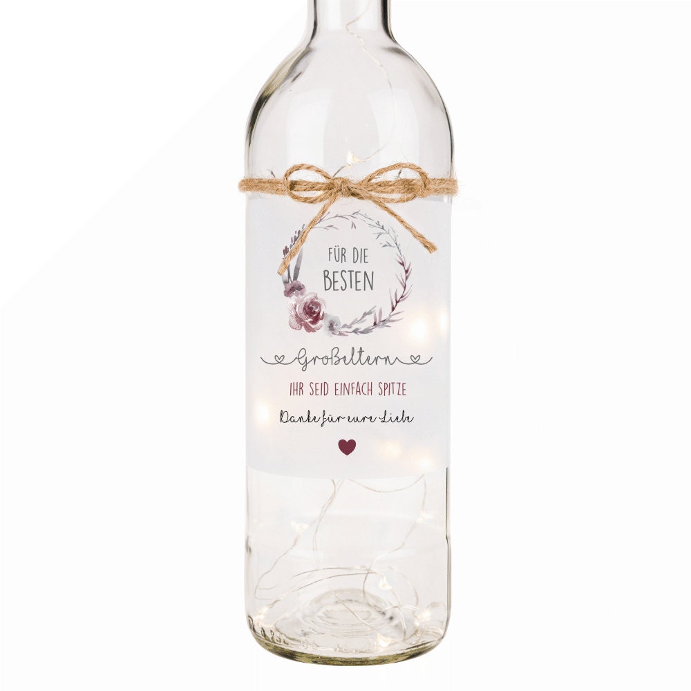 Flaschenlicht für die besten Großeltern | Leuchtflasche mit Lichterkette und tollem Spruch für Oma u. Opa