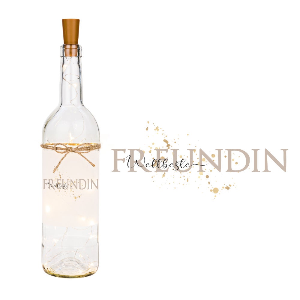Du bist auf der Suche nach einem kleinen und kreativen Geschenk für deine beste Freundin? Das Flaschenlicht ist eine schöne und originelle Geschenkidee. Das Freundschaftsgeschenk symbolisiert die tiefe Verbundenheit zueinander. Die Leuchtflasche für deine Busenfreundin, wird mit einer Banderole und dem Schriftzug "Weltbeste Freundin" liebevoll handgefertigt.