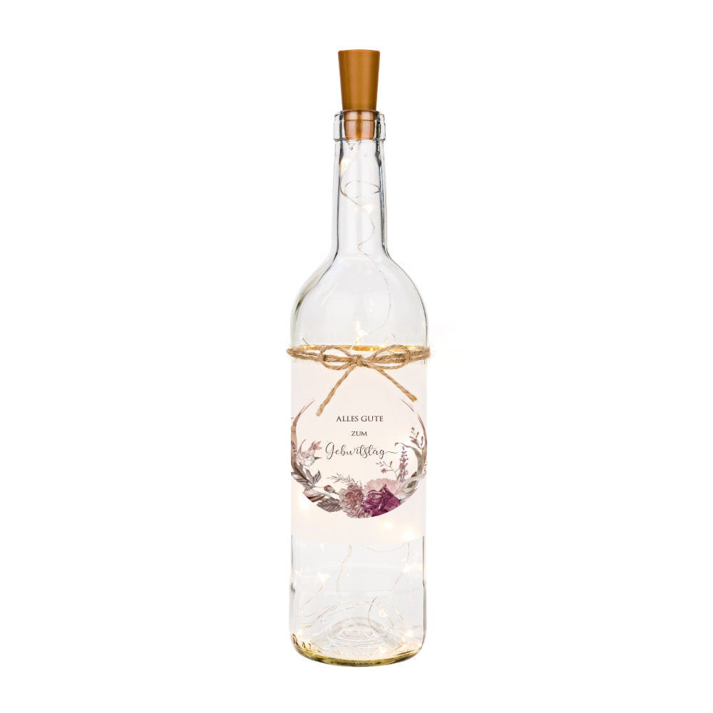 Flaschenlicht "Herzlichen Glückwunsch zum Geburtstag" | Geburtstagsgeschenk für Frauen | Eignet sich perfekt als Geldgeschenk | 3 Motivvarianten zur Auswahl