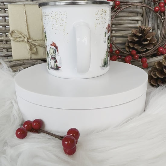 Die zauberhafte personalisierte Weihnachtstasse für Kinder wird mit deinem Wunschnamen und zuckersüßem Dinosaurier Motiv für dich angefertigt. Die Tasse mit dem lustigen und trendigem Design ist das besondere Nikolaus, Wichtel und Weihnachtsgeschenk für Jungen. Bereite dieses Weihnachten eine ganz persönliche und besondere Freude und ein wundervolles Geschenk mit der liebevoll designten Emailletasse.