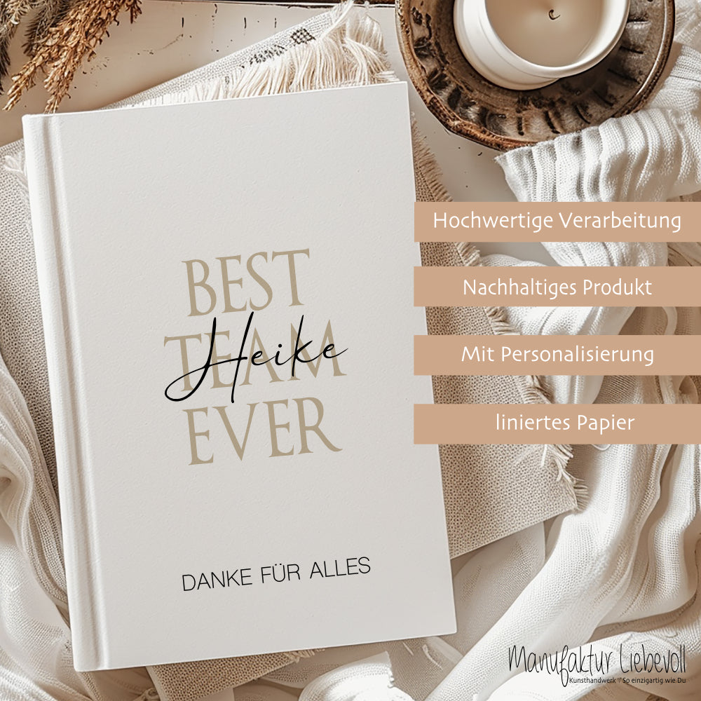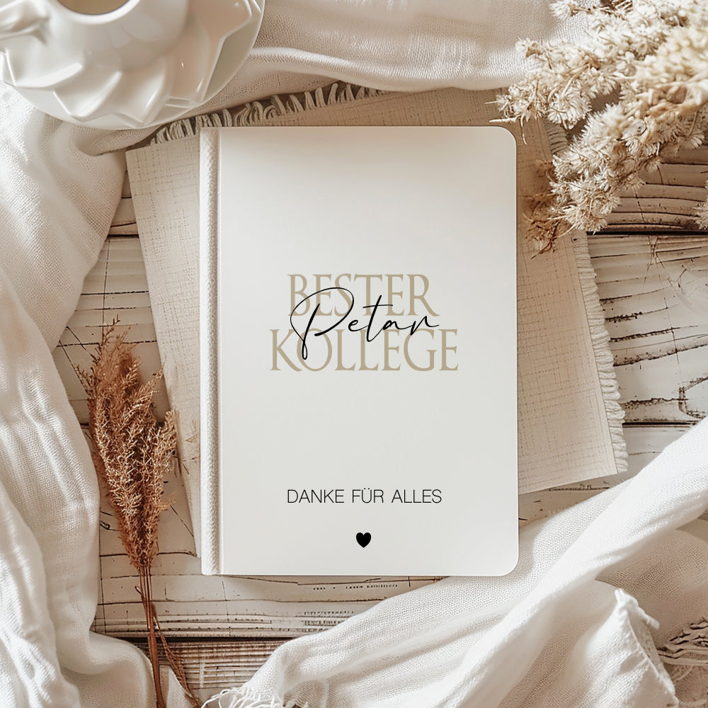 Mit der Möglichkeit, das Notizbuch mit dem Namen deiner Kollegin zu personalisieren, wird dieses Geschenk zu einem einzigartigen Erinnerungsstück. Der eingedruckte Spruch wird für immer an die wunderbaren Momente im Büro erinnern und zeigt, wie viel sie dir bedeutet hat.