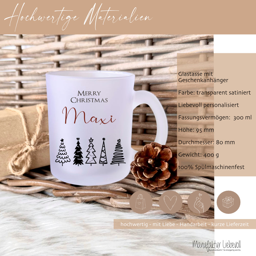 Personalisierte Glastasse für warme Getränke wie Glühwein, Tee, Punsch, Kaffee. Die Glühweintasse wird liebevoll mit dem individuellen personalisiert. Die Tasse ist ein schönes Weihnachtsgeschenk für die beste Freundin, Kollegin und Familie.