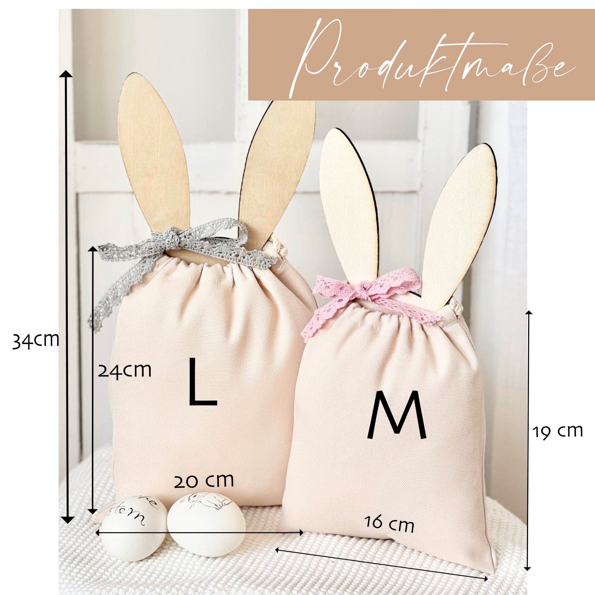 Stoffbeutel M ca. 19 x 16 cm - Holzosterhase 30 cm