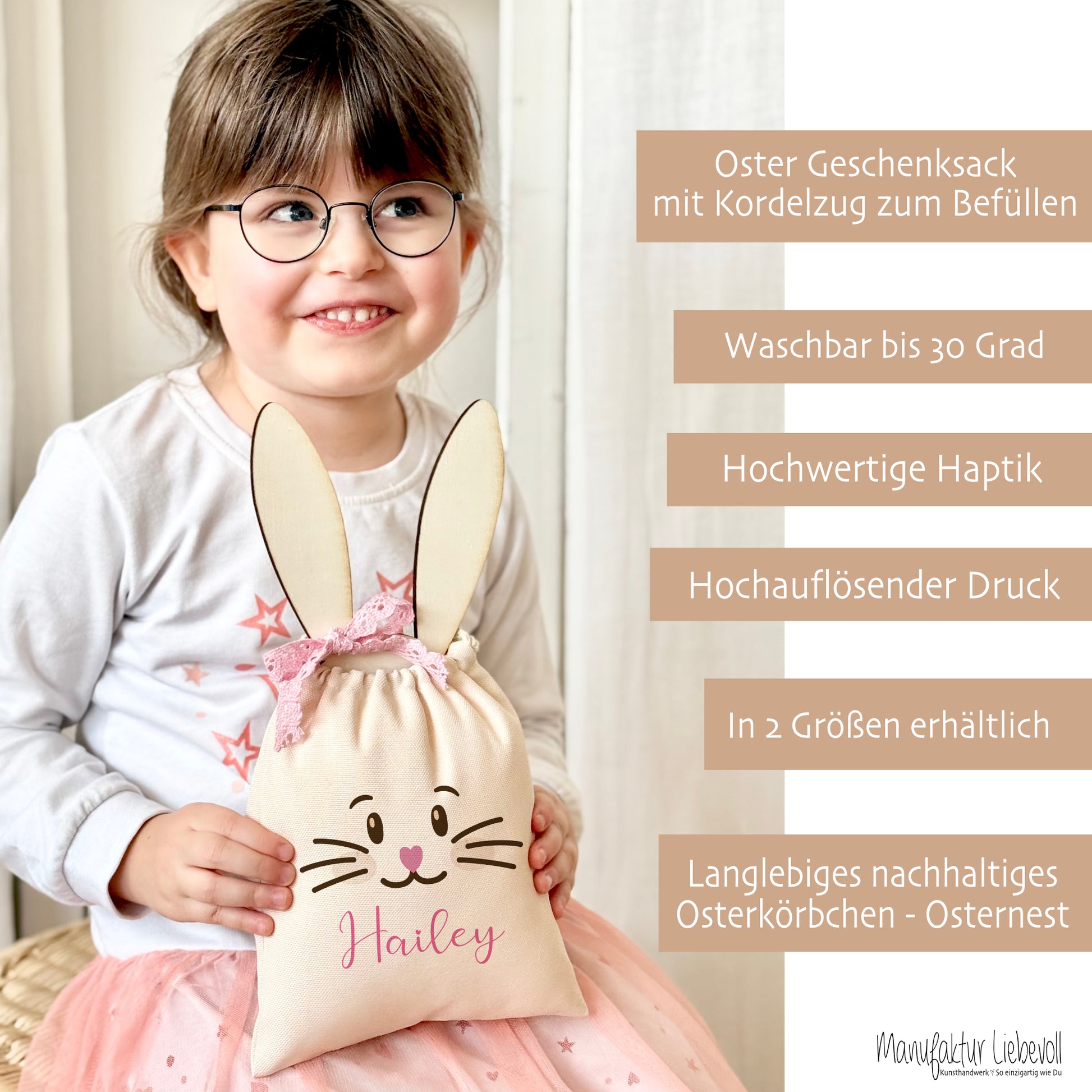 Hochwertiges Material: Jeder Osterbeutel wird aus erstklassigem Canvas Stoff gefertigt, der dafür sorgt, dass deine Leckereien und Geschenke frisch und sicher aufbewahrt werden.