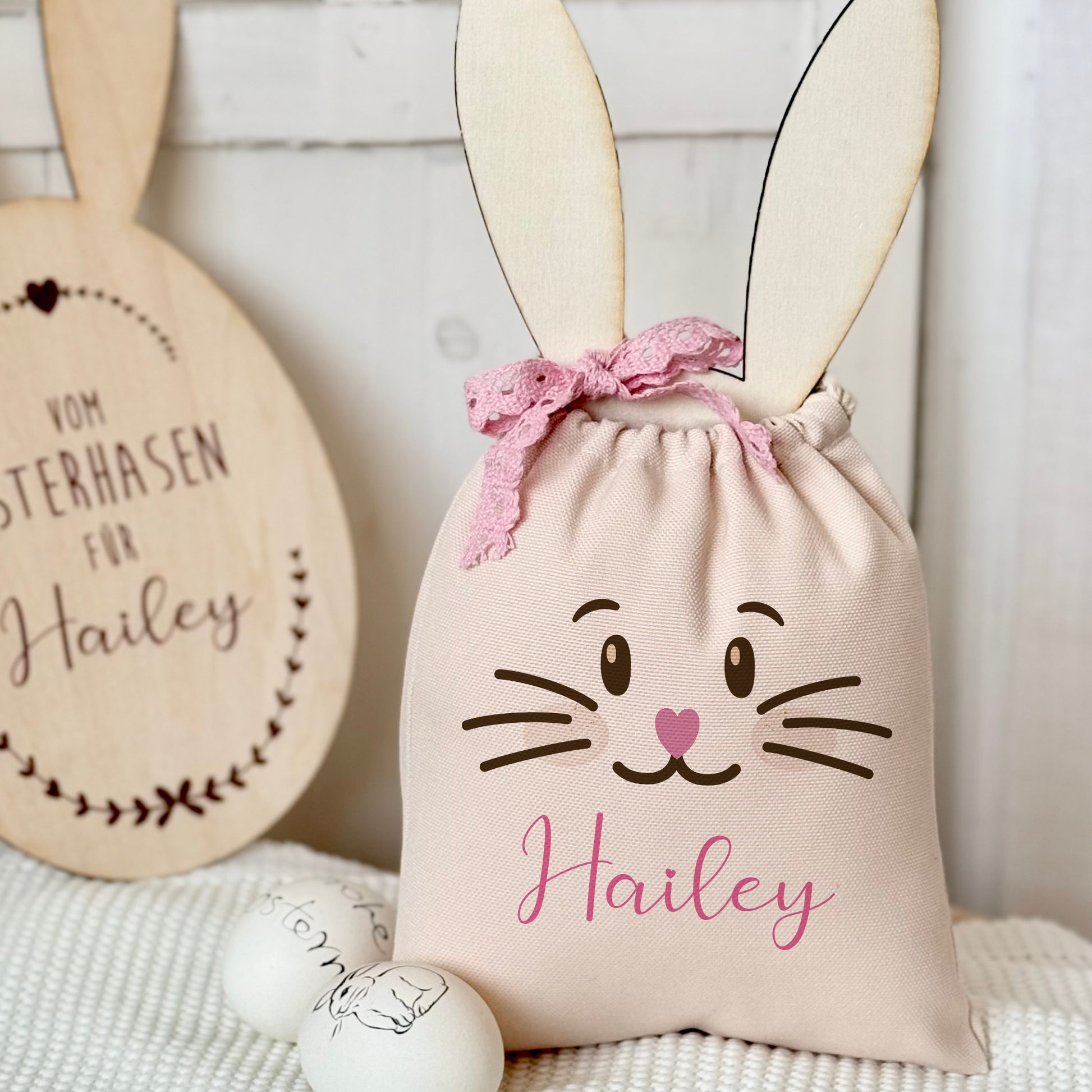 Entdecke unser bezauberndes personalisiertes Osterkörbchen aus Stoff für Kinder!