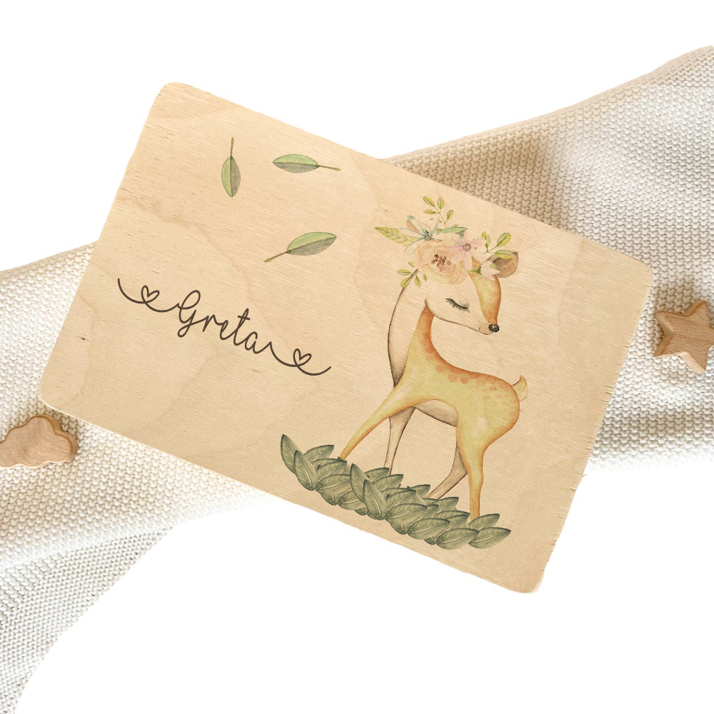 Liebevoll personalisierte "Rehkitz" Erinnerungskiste aus Holz