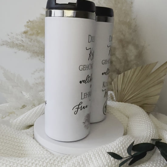 Einzigartige Thermobecher für den Kaffee to go mit besonderen Schriftzügen: "Dieser Kaffee gehört der/dem weltbesten -Berufsbezeichnung / Hobby / Familie und Wunschnamen". Die Kaffeebecher aus Edelstahl sind individuelle und herzliche Geschenke als Dankeschön, zum Abschied oder als Freundschaftsgeschenk. Verschenke solch einen isolierten Thermobecher an deine Arbeitskollegin, deinen Arbeitskollegen, deine beste Freundin, deinem Freund, deiner Mama, Oma und vielen weiteren lieben Menschen und bereite ihnen ein wertschätzendes Geschenk.