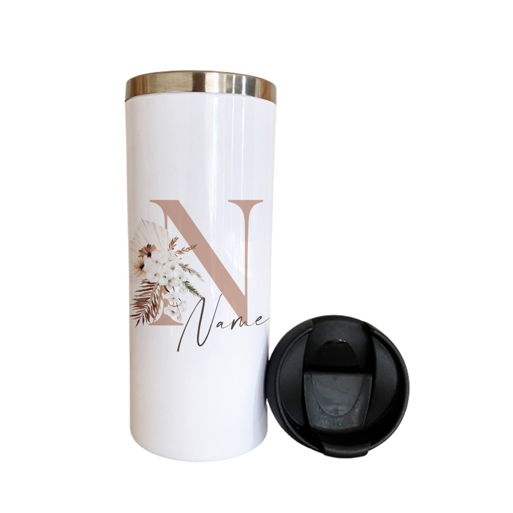Personalisierter Thermobecher mit Deckel, Name und Buchstabe in Boho