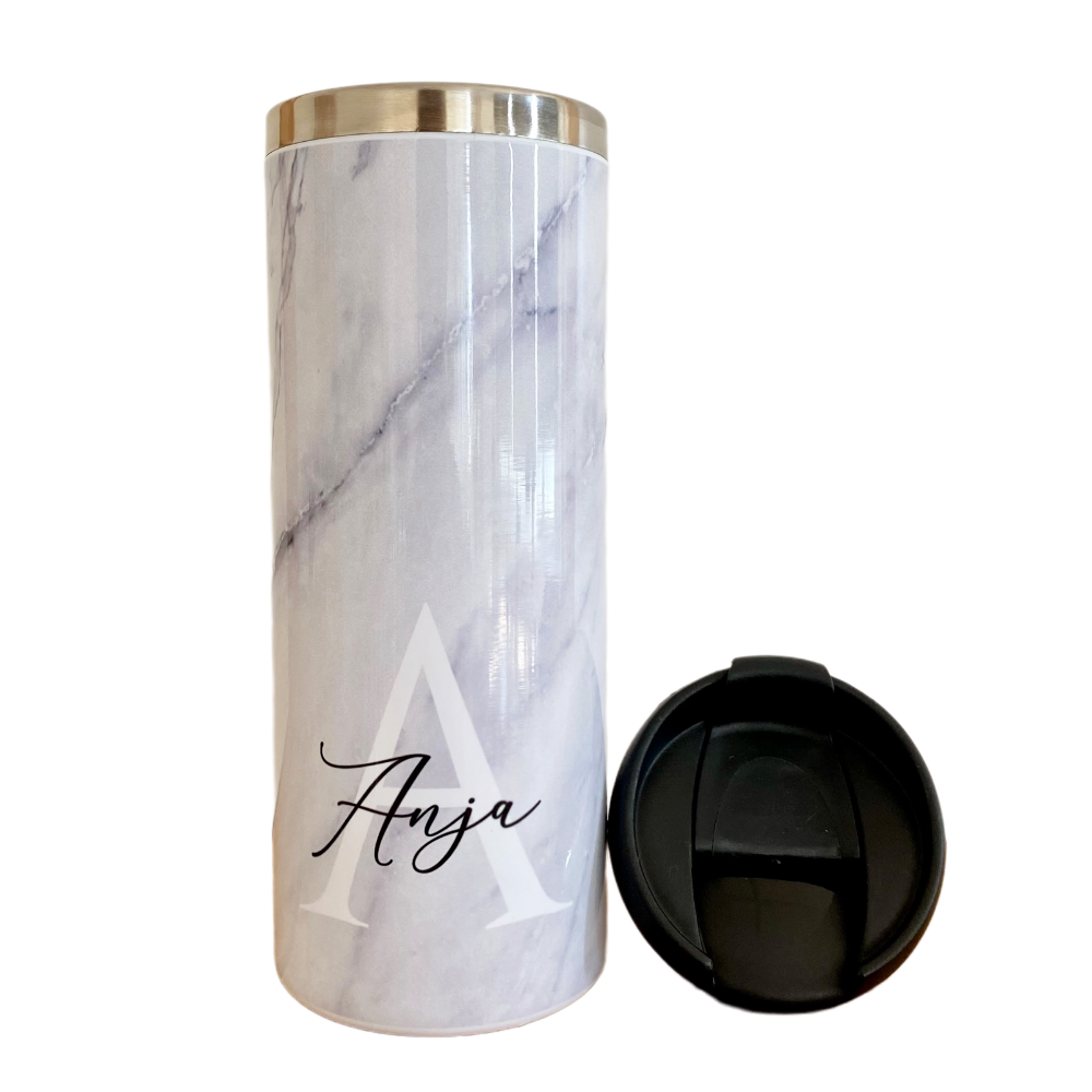 Der angesagte personalisierte Kaffeebecher to go ist der perfekte Begleiter im Alltag und in der Freizeit. Bereite dir oder deinem Lieblingsmenschen eine besondere Freude mit einem persönlichen Geschenk in Form dieses trendigen Thermobechers mit Namensgravur und deinem Anfangsbuchstaben. Er hält deine Lieblingsgetränke wie für Tee und Kaffee warm und ist zudem dein ganz individueller und besonderer Alltagsbegleiter. Der Coffee to go Becher wird in liebevoller Handarbeit in unserer Manufaktur nach deinen Angaben designt und mit deinem Wunschnamen und Anfangsbuchstaben beschriftet. Die einzigartige und angesagte Geschenkidee mit persönlicher Note in Marmoroptik für trendbewusste junge Frauen und Männer.