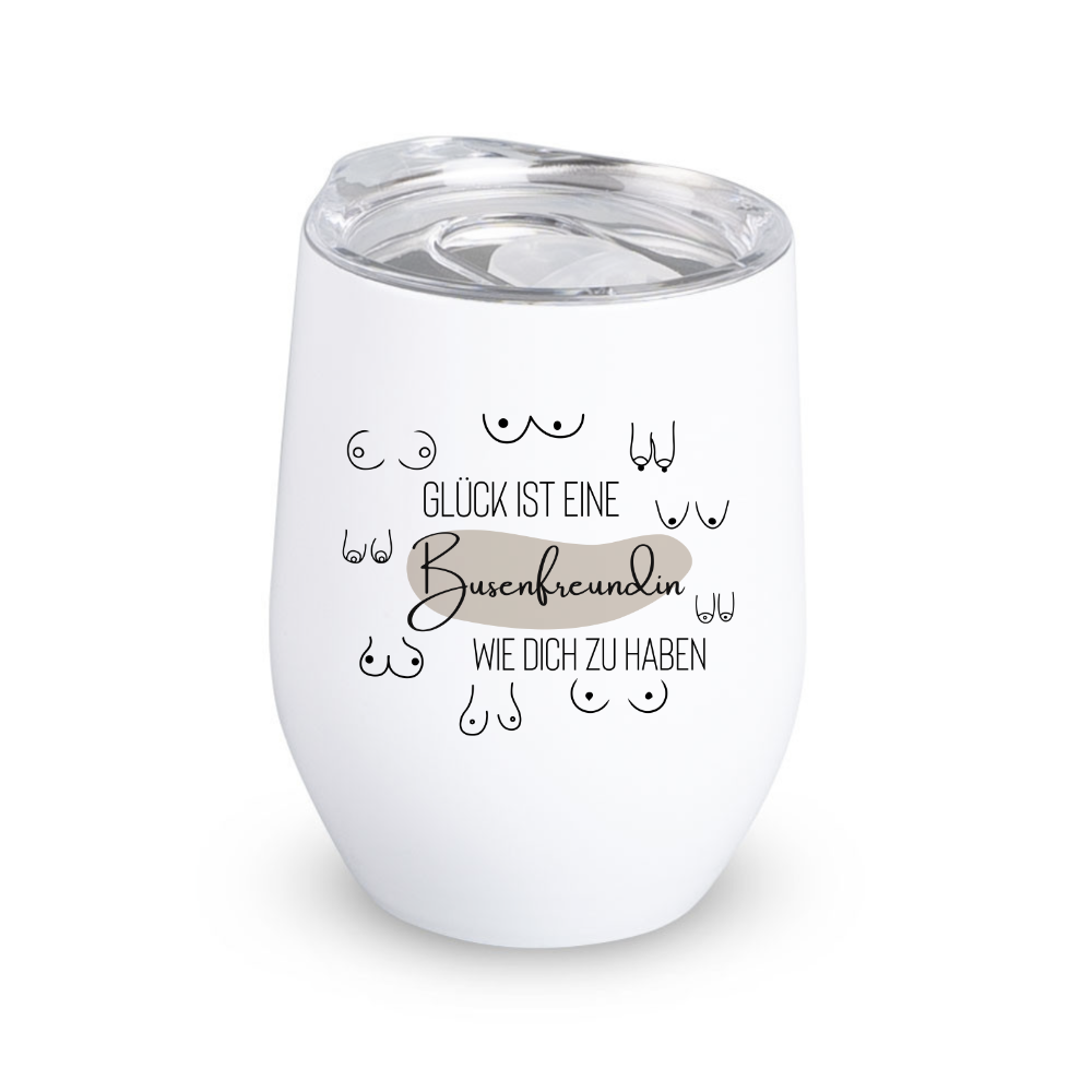 Wenn du auf der Suche nach einem besonderen Geschenk für deine beste Freundin bist, dann ist der Edelstahl-Weinbecher mit dem liebevollen Motto "Glück ist eine Busenfreundin wie dich zu haben" genau das Richtige! Dieser einzigartige Thermobecher ist nicht nur praktisch, sondern bringt auch jede Menge Spaß und ein Lächeln auf ihr Gesicht.